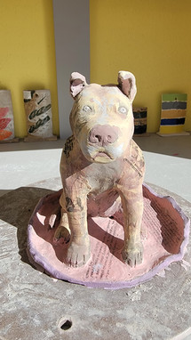 The 1828 edition of Webster’s dictionary defined “cur" or "mongrel" as “a degenerate dog; and in reproach, a worthless man.” Rather than apply the lessons learned from past transgressions of both canines and humans to redefine what “better breeding” might mean in this day and age, the dog fancy behaves as though nothing has changed since the nineteenth century, and that nonhuman animals aren’t subject to the same laws of biology as humans. The forced sterilization of women of color and people with mental and physical disabilities, the institutionalization of people that did not fit the ideals of the time have yet to be fully reckoned with as we move toward the continued villanization and dehumanization of people in the United States who do not fit the ideals of the old ways of thinking. Likewise, institutions, clubs, and people continue to promulgate ideas about acceptable dog breeds and breed specific legislation continues to be proliferated without critical thinking. It is for this reason I took on the work to unpack these ideas in the creation of a series of ceramic sculptures titled, "What are you: Dehumanizing Racial Ideologies."
